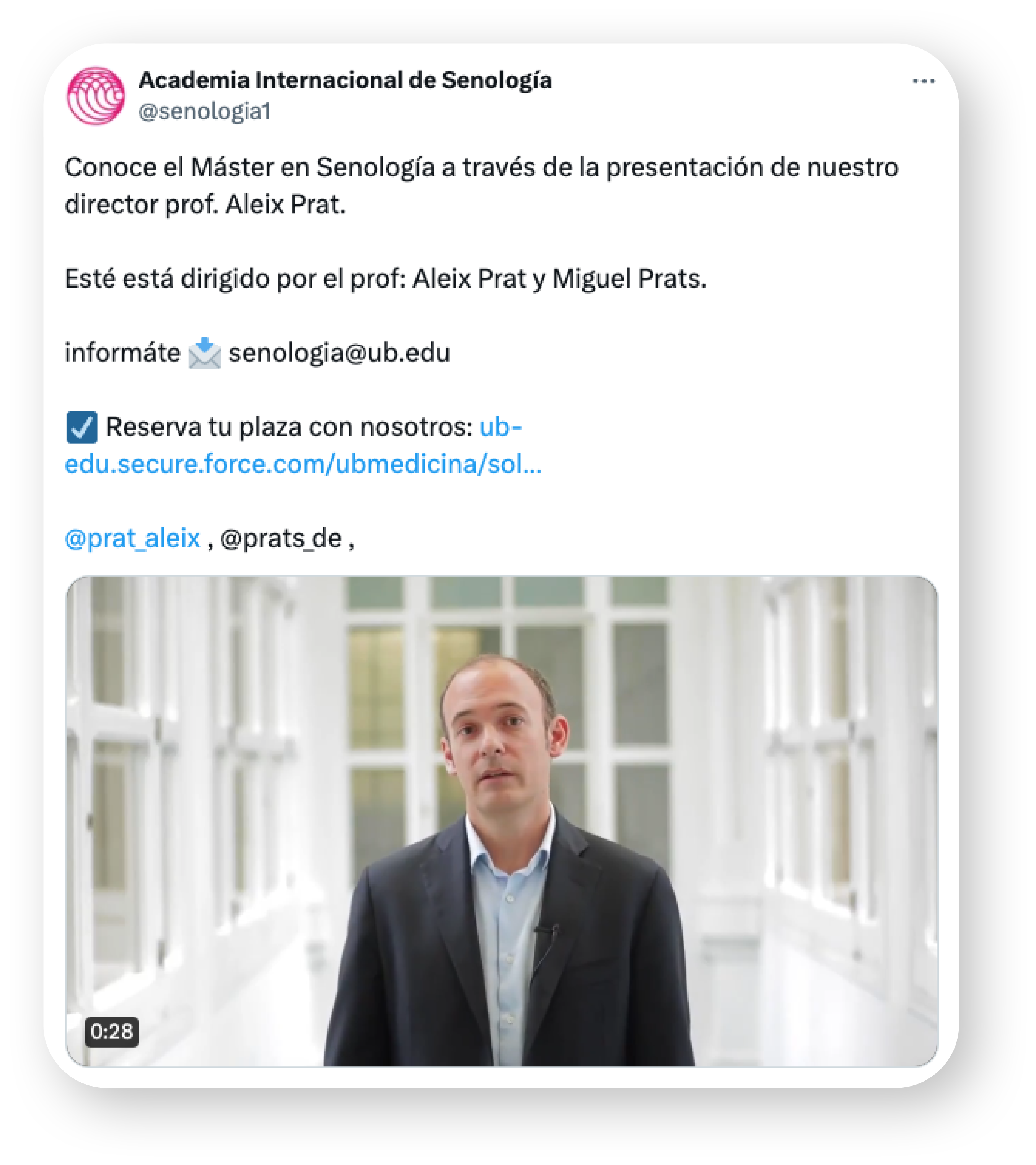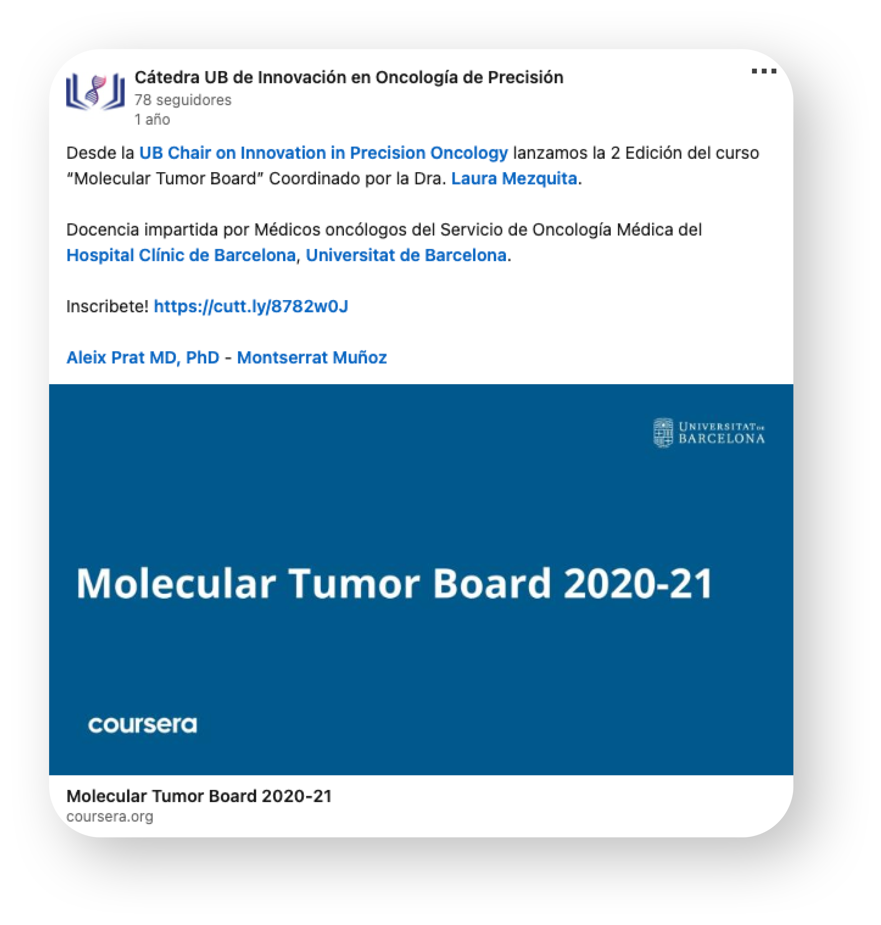 El Dr. Aleix Prat es médico, investigador, docente y emprendedor, reconocido internacionalmente por sus contribuciones a la oncología de precisión, especialmente en el cáncer de mama. Se formó como oncólogo médico MIR en el Hospital Vall d'Hebron (2004-2008) bajo la supervisión del Dr. Josep Baselga y continuó su formación en los Estados Unidos (2008-2012). Desde 2014 hasta 2022, dirigió el Servicio de Oncología Médica del Hospital Clínic de Barcelona, y desde 2023 es el director del Instituto del Cáncer y Enfermedades de la Sangre del mismo centro. A partir de 2024, lidera también el Clinic Barcelona Comprehensive Cancer Center.