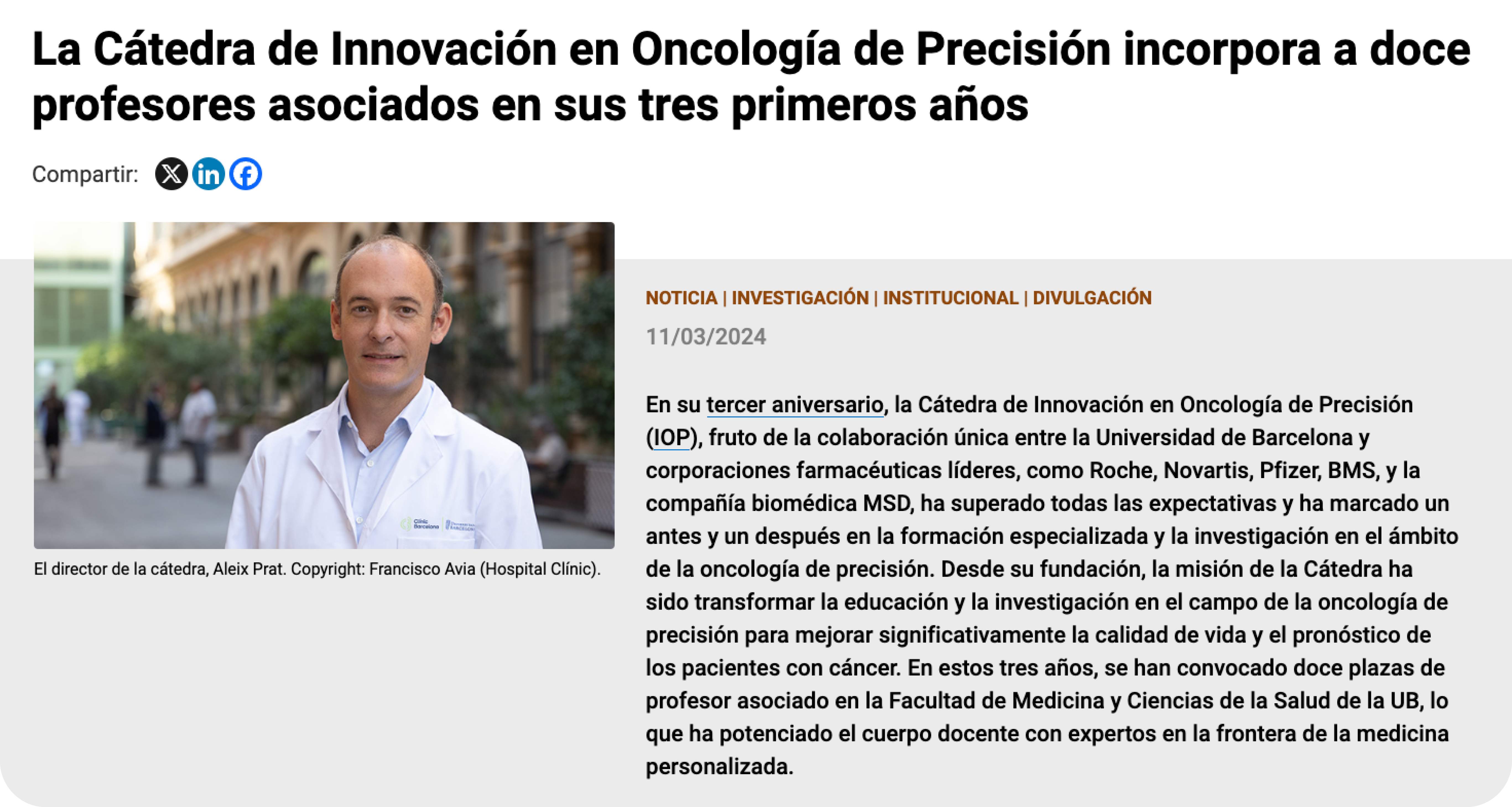 Aquí puedes encontrar las noticias más actuales de la Cátedra de Innovación en Oncología de Precisión.